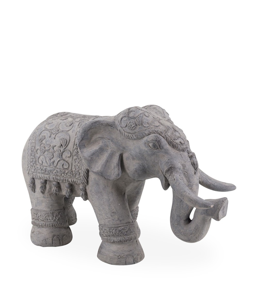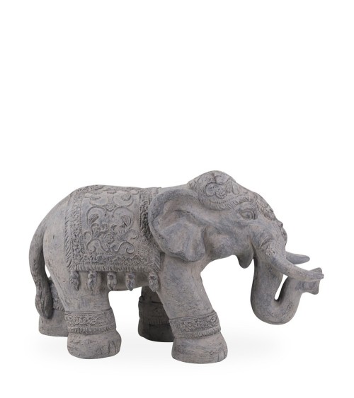 Statue déléphant sculptée en résine couleur grise et effet vieilli. Aucun assemblage requis.