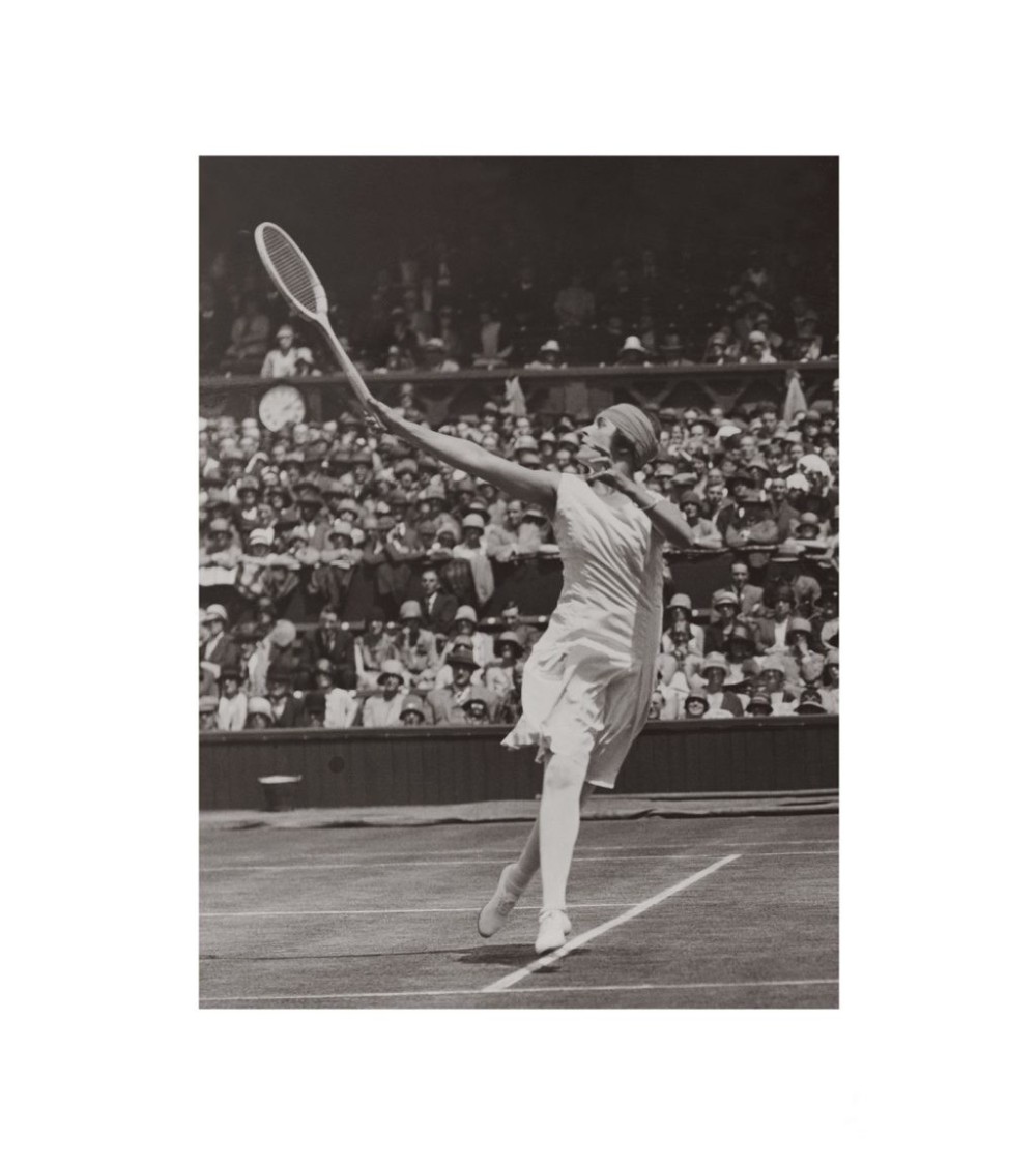 Légende de la photo :Demi-finale de tennis femme à Wimbledon en Angleterre en 1928. L'espagnole Lili Alvarez a battu l'australienne Daphné Akhurst 6-3 et 6-0.Photographe anonyme.Support aluminiumCARACTERISTIQUES : Épais de 3 mm, le matériau composite, lalu Dibond, est composé de 3 couches : deux feuilles revêtues daluminium blanc platine entourent un noyau en polyéthylène noir. Dans cette finition, les photos ne sont pas encadrées mais intègrent un passe-partout blanc et une marge noire afin davoir le rendu le plus authentique possible pour mettre en avant la photographie en noir et blanc. Système daccroche : 2 attaches adhésives carrées en métal au dosAVANTAGES : Léger, convient parfaitement aux images grand format, utilisable en intérieur et en extérieur. Sans vitrage, rendu mat, pur et authentique. A propos de KELEPOQKELEPOQ est une jeune marque de décoration murale créée début 2020. Nous sommes déjà le premier éditeur de photographies anciennes 100% made in France. Nos équipes chinent des photos dépoque à travers lEurope, les restaurent dans notre propre atelier basé en Bretagne et les édite en haute qualité.Notre site web marchand www.kelepoq.com compte plus de 1300 photos réparties dans 20 collections, afin que chacun puisse trouver la photo en lien avec sa passion pour une décoration qui lui ressemble. Kelepoq, pour tous les intérieurs, pour toutes les passions.