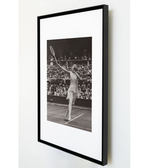 Légende de la photo :Demi-finale de tennis femme à Wimbledon en Angleterre en 1928. L'espagnole Lili Alvarez a battu l'australienne Daphné Akhurst 6-3 et 6-0.Photographe anonyme.Caisse américaine noireCARACTERISTIQUES : Tirage sur une plaque dalu dibond de 3 mm, avec un cadre en aluminium (noir ou blanc) ou en chêne. Système daccroche : le profil de la caisse américaine aluminium est en forme de U, et vous permet de venir y glisser vis ou crochets que vous aurez préalablement installés au mur. Quant à la caisse américaine en chêne, deux accroches sont placées au dos pour une fixation simple au mur.AVANTAGES : Présentation sobre et élégante. Donne lillusion dun visuel flottant, pour un effet haut de gamme. Finition de référenceA propos de KELEPOQKELEPOQ est une jeune marque de décoration murale créée début 2020. Nous sommes déjà le premier éditeur de photographies anciennes 100% made in France. Nos équipes chinent des photos dépoque à travers lEurope, les restaurent dans notre propre atelier basé en Bretagne et les édite en haute qualité.Notre site web marchand www.kelepoq.com compte plus de 1300 photos réparties dans 20 collections, afin que chacun puisse trouver la photo en lien avec sa passion pour une décoration qui lui ressemble. Kelepoq, pour tous les intérieurs, pour toutes les passions.