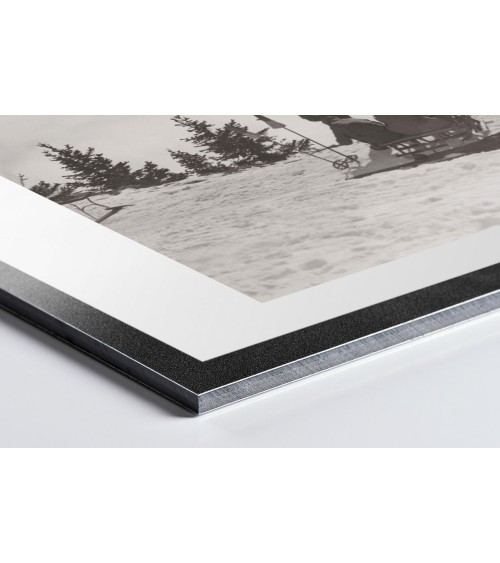 Légende de la photo :Pique-nique dans la neige au milieu d'une journée de ski dans les années 1930.Photographe anonyme.Support aluminiumCARACTERISTIQUES : Épais de 3 mm, le matériau composite, lalu Dibond, est composé de 3 couches : deux feuilles revêtues daluminium blanc platine entourent un noyau en polyéthylène noir. Dans cette finition, les photos ne sont pas encadrées mais intègrent un passe-partout blanc et une marge noire afin davoir le rendu le plus authentique possible pour mettre en avant la photographie en noir et blanc. Système daccroche : 2 attaches adhésives carrées en métal au dosAVANTAGES : Léger, convient parfaitement aux images grand format, utilisable en intérieur et en extérieur. Sans vitrage, rendu mat, pur et authentique. A propos de KELEPOQKELEPOQ est une jeune marque de décoration murale créée début 2020. Nous sommes déjà le premier éditeur de photographies anciennes 100% made in France. Nos équipes chinent des photos dépoque à travers lEurope, les restaurent dans notre propre atelier basé en Bretagne et les édite en haute qualité.Notre site web marchand www.kelepoq.com compte plus de 1300 photos réparties dans 20 collections, afin que chacun puisse trouver la photo en lien avec sa passion pour une décoration qui lui ressemble. Kelepoq, pour tous les intérieurs, pour toutes les passions.