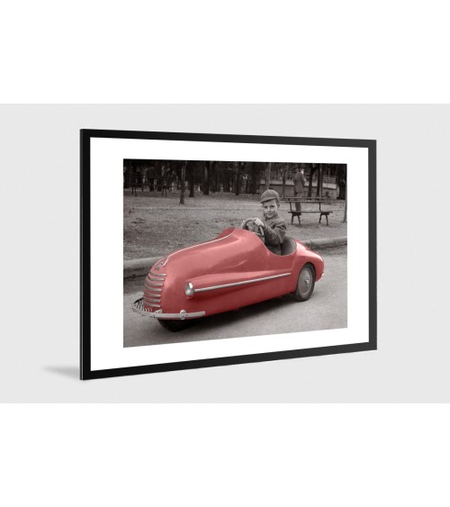 Légende de la photo :Petit garçon jouant à la voiture à pédale dans un parc dans les années 1930.Photographe anonyme.Colorisation dune partie de la photo par les équipes de Kelepoq.Support aluminiumCARACTERISTIQUES : Épais de 3 mm, le matériau composite, lalu Dibond, est composé de 3 couches : deux feuilles revêtues daluminium blanc platine entourent un noyau en polyéthylène noir. Dans cette finition, les photos ne sont pas encadrées mais intègrent un passe-partout blanc et une marge noire afin davoir le rendu le plus authentique possible pour mettre en avant la photographie en noir et blanc. Système daccroche : 2 attaches adhésives carrées en métal au dosAVANTAGES : Léger, convient parfaitement aux images grand format, utilisable en intérieur et en extérieur. Sans vitrage, rendu mat, pur et authentique. A propos de KELEPOQKELEPOQ est une jeune marque de décoration murale créée début 2020. Nous sommes déjà le premier éditeur de photographies anciennes 100% made in France. Nos équipes chinent des photos dépoque à travers lEurope, les restaurent dans notre propre atelier basé en Bretagne et les édite en haute qualité.Notre site web marchand www.kelepoq.com compte plus de 1300 photos réparties dans 20 collections, afin que chacun puisse trouver la photo en lien avec sa passion pour une décoration qui lui ressemble. Kelepoq, pour tous les intérieurs, pour toutes les passions.