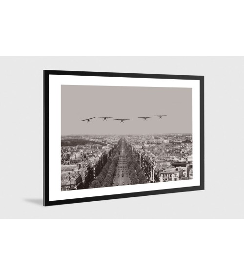 Légende de la photo :Unités aériennes lors du défilé militaire du 14 juillet à Paris , au-dessus de l'Avenue des Champs-Elysées.Photographe anonyme.Support aluminiumCARACTERISTIQUES : Épais de 3 mm, le matériau composite, lalu Dibond, est composé de 3 couches : deux feuilles revêtues daluminium blanc platine entourent un noyau en polyéthylène noir. Dans cette finition, les photos ne sont pas encadrées mais intègrent un passe-partout blanc et une marge noire afin davoir le rendu le plus authentique possible pour mettre en avant la photographie en noir et blanc. Système daccroche : 2 attaches adhésives carrées en métal au dosAVANTAGES : Léger, convient parfaitement aux images grand format, utilisable en intérieur et en extérieur. Sans vitrage, rendu mat, pur et authentique. A propos de KELEPOQKELEPOQ est une jeune marque de décoration murale créée début 2020. Nous sommes déjà le premier éditeur de photographies anciennes 100% made in France. Nos équipes chinent des photos dépoque à travers lEurope, les restaurent dans notre propre atelier basé en Bretagne et les édite en haute qualité.Notre site web marchand www.kelepoq.com compte plus de 1300 photos réparties dans 20 collections, afin que chacun puisse trouver la photo en lien avec sa passion pour une décoration qui lui ressemble. Kelepoq, pour tous les intérieurs, pour toutes les passions.