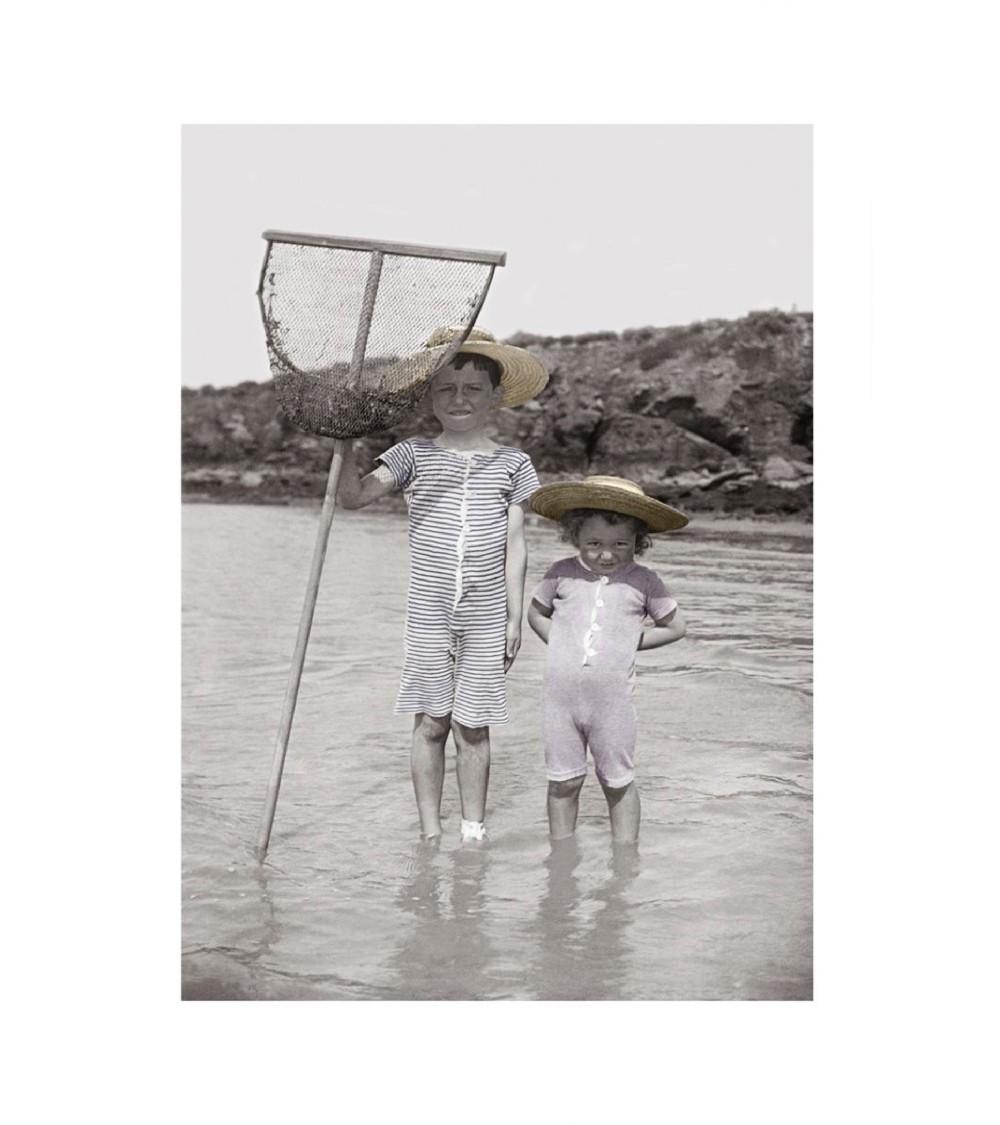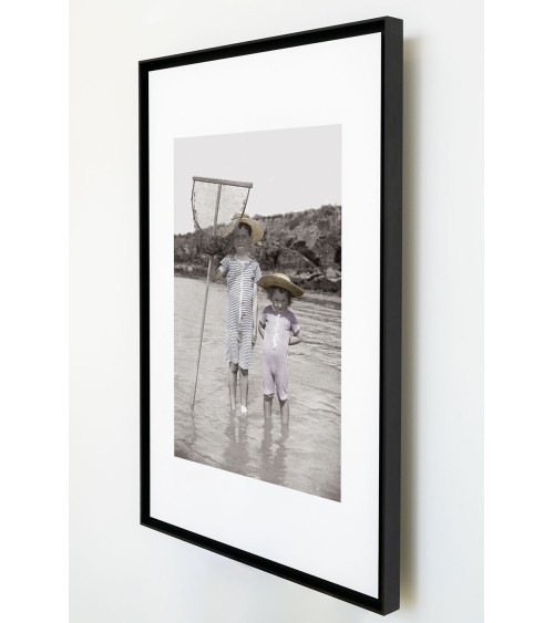 Légende de la photo :Enfants à la pêche à l'épuisette à Pornic en France en 1904.Photographe anonyme.Colorisation dune partie de la photo par les équipes de Kelepoq.Caisse américaine noireCARACTERISTIQUES : Tirage sur une plaque dalu dibond de 3 mm, avec un cadre en aluminium (noir ou blanc) ou en chêne. Système daccroche : le profil de la caisse américaine aluminium est en forme de U, et vous permet de venir y glisser vis ou crochets que vous aurez préalablement installés au mur. Quant à la caisse américaine en chêne, deux accroches sont placées au dos pour une fixation simple au mur.AVANTAGES : Présentation sobre et élégante. Donne lillusion dun visuel flottant, pour un effet haut de gamme. Finition de référenceA propos de KELEPOQKELEPOQ est une jeune marque de décoration murale créée début 2020. Nous sommes déjà le premier éditeur de photographies anciennes 100% made in France. Nos équipes chinent des photos dépoque à travers lEurope, les restaurent dans notre propre atelier basé en Bretagne et les édite en haute qualité.Notre site web marchand www.kelepoq.com compte plus de 1300 photos réparties dans 20 collections, afin que chacun puisse trouver la photo en lien avec sa passion pour une décoration qui lui ressemble. Kelepoq, pour tous les intérieurs, pour toutes les passions.