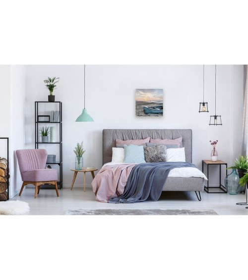 Tableau sur toile barque 30x30 cm. Cette impression sur toile décorative tendue sur un châssis en bois FSC est imprimée en haute définition grâce à des encres UV sans aucun solvant. Elle est certifiée Origine France Garantie et fabriquée à la commande pour éviter toute surproduction.