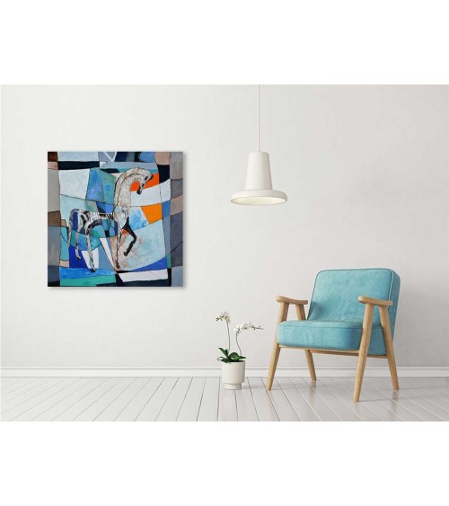 Tableau abstrait cheval grec ancien toile imprimée 100x100cm