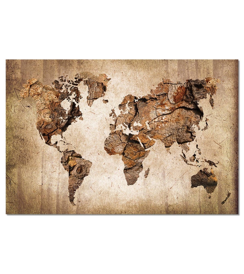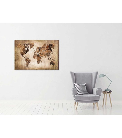 Tableau carte du monde effet bois toile imprimée 120x80cm