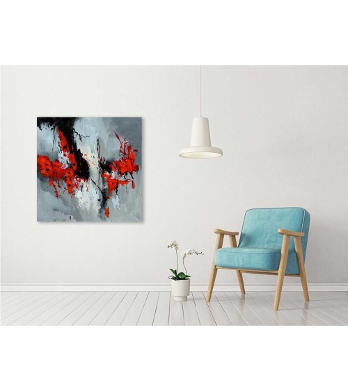 Tableau abstrait moderne coquelicots toile imprimée 100x100cm