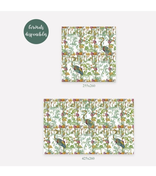 Composé de 3 lés de papier peint, chaque lés mesure 85 cm de largeur sur 260 cm de hauteur.Papier peint et procédé d'impression totalement écologique, Made in France.- Pose : Encoller directement le mur avec une colle spéciale papier peint intissé, Pose en bord à bord, ne rétracte pas lors du séchage (grande stabilité). Indéchirable, cette toile intissé se manipule aisément, facile à couper au cutter- Nettoyage : Une éponge et de l'eau savonneuse permettent d'effacer les salissures- Qualité : Papier peint 165gr/M², indéchirable , imperméable- Développement durable : Procédé d'impression à base d'encre 100% végétales sans solvant, Emission dans l'air : A+, labellisé Green Guard et Nordic Environmental- Couleurs : Des couleurs éclatantes