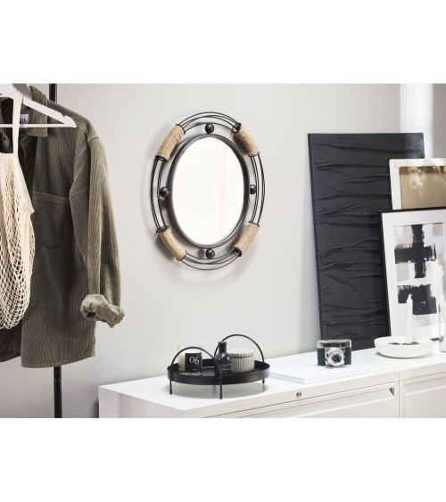 Grâce à lassociation du métal noir et de la corde en jute naturel, ce miroir est un accessoire à la fois robuste et très tendance. Ces matériaux de haute qualité assurent sa durabilité et son look attrayant. Ce miroir ovale sera idéal comme miroir de maquillage accroché au-dessus de votre coiffeuse, mais il complétera aussi le décor de votre chambre, salon ou entrée. Surtout si votre intérieur sinspire du style moderne ou industriel.