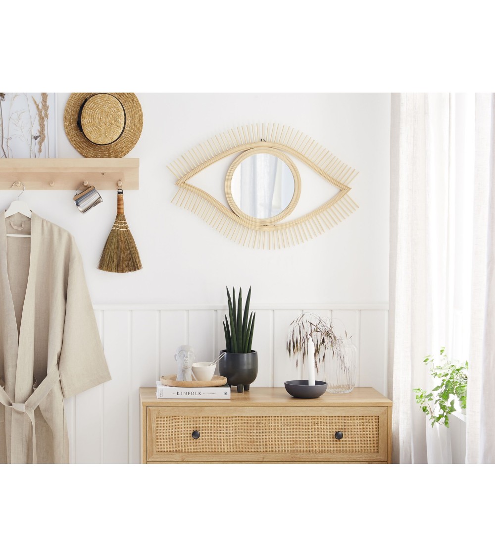 Si vous aimez les ambiances uniques et les objets de décoration originaux, ce miroir mural est définitivement fait pour vous. Méticuleusement fabriqué à partir de bois de bambou de haute qualité, il sera un magnifique ajout à tout espace bohème, rustique ou moderne. Son cadre en forme d'il lui donne une touche tribale tendance, ce qui en fait un accessoire idéal aussi pour les intérieurs orientaux. Remarquez la finition légère et naturelle qui met parfaitement en valeur ses courbes. Que ce soit dans le salon, la chambre ou le couloir, ce miroir déco sera un véritable accroche-regard.