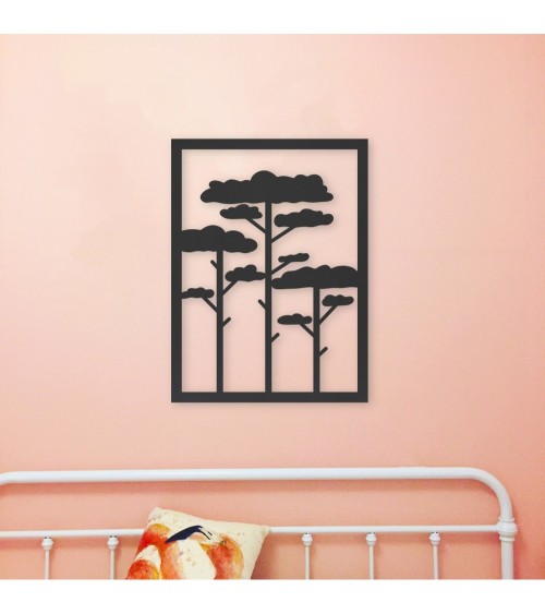 Le tableau en bois Pins est la décoration murale idéale pour les amoureux des Landes, des sunsets et des balades en forêts. Affichez désormais une décoration murale en bois, mais aussi de lart durable et éco-responsable dans vos espaces !Notre tableau en bois Pins sinspire de la nature et particulièrement celle de notre côte landaise. Un élément décoratif, effet tableau en métal, parfait pour disposer avec les photographies ou posters colorés.Accroché au mur, posé au sol ou sur une étagère, laissez-vous tenter par la touche 3D pour votre déco murale avec nos tableaux en bois décoratifs qui ont laspect de tableaux en metal ! Fabriqués en France, dans notre atelier à Capbreton, ils se déclinent en plusieurs designs, sont également proposés en en deux tailles; à combiner selon vos envies du moment. Petit conseil dami : Pour fixer notre tableau au mur sans faire de trou, quil soit de taille standard ou de grande taille, nous vous conseillons de retirer notre accroche murale et dutiliser des languettes adhésives scratch 3M pour tableaux, disponibles dans presque tous les magasins de bricolage ou sur internet. Attention au poids quils soutiennent, mentionné sur le packaging. Cela ne laissera alors aucune trace sur votre mur lisse.CARACTERISTIQUES : - Fabriqué en France - Prêt à accrocher- Découpe et gravure laser ultra-précises- Bois certifié éco-responsable, résistant et durable- Teinté noir dans la masse (colorants naturels)- Épaisseur : 8 mm- Dimensions tableau standard : 28 x 37,5 cm- Dimensions grand tableau : 59,5 x 79,8 cmLE PLUS DU PRODUIT : Notre tableau en bois Pins est fabriqué en France et livré « prêt à être accroché ». Vous pourrez ainsi linstaller dès son arrivée.