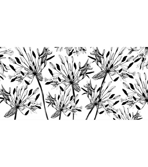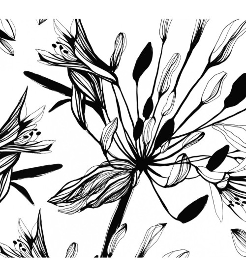 Papier peint panoramique fleur graphique 340 x 250 noir et blanc