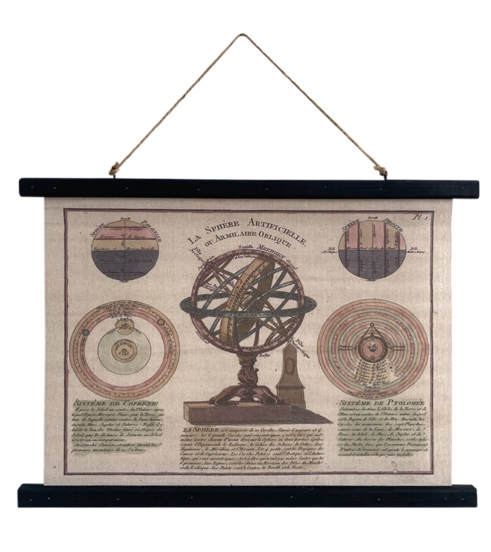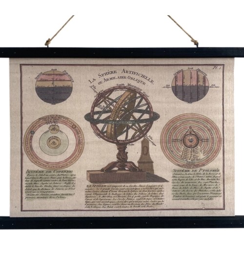 Toile déco Globe armillaire à suspendre Lin et bois de sapin Dimensions : Hauteur 43 cm - Largeur 60 cm - Profondeur 2 cm