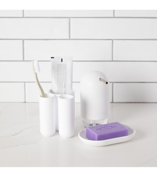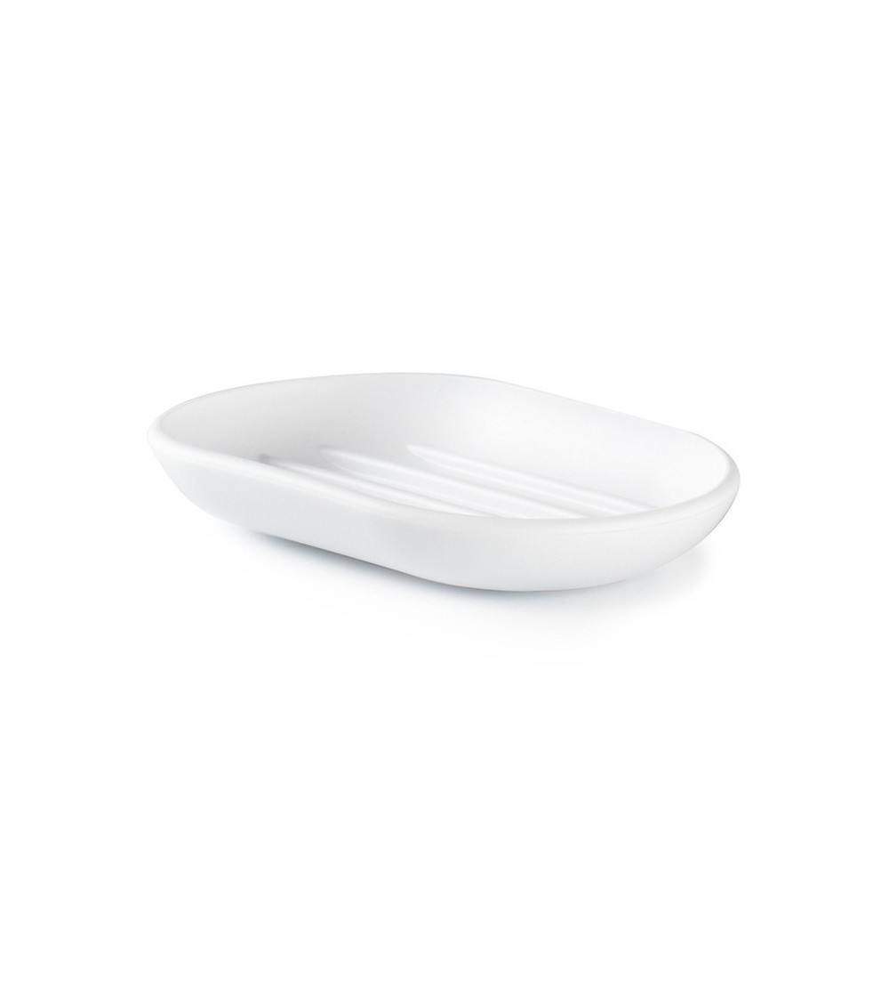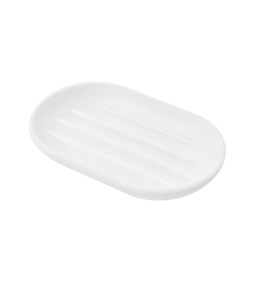 Porte savon Touch. La gamme Touch se nomme ainsi par le touché très doux de la matière utilisée pour créer ces produits. Dimensions : 12.7 x 8.3 x 2 cm Matière : moulé touché doux