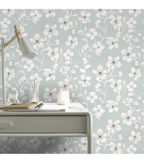 Papier peint intissé fleurs Sophie gris 1005x52cm