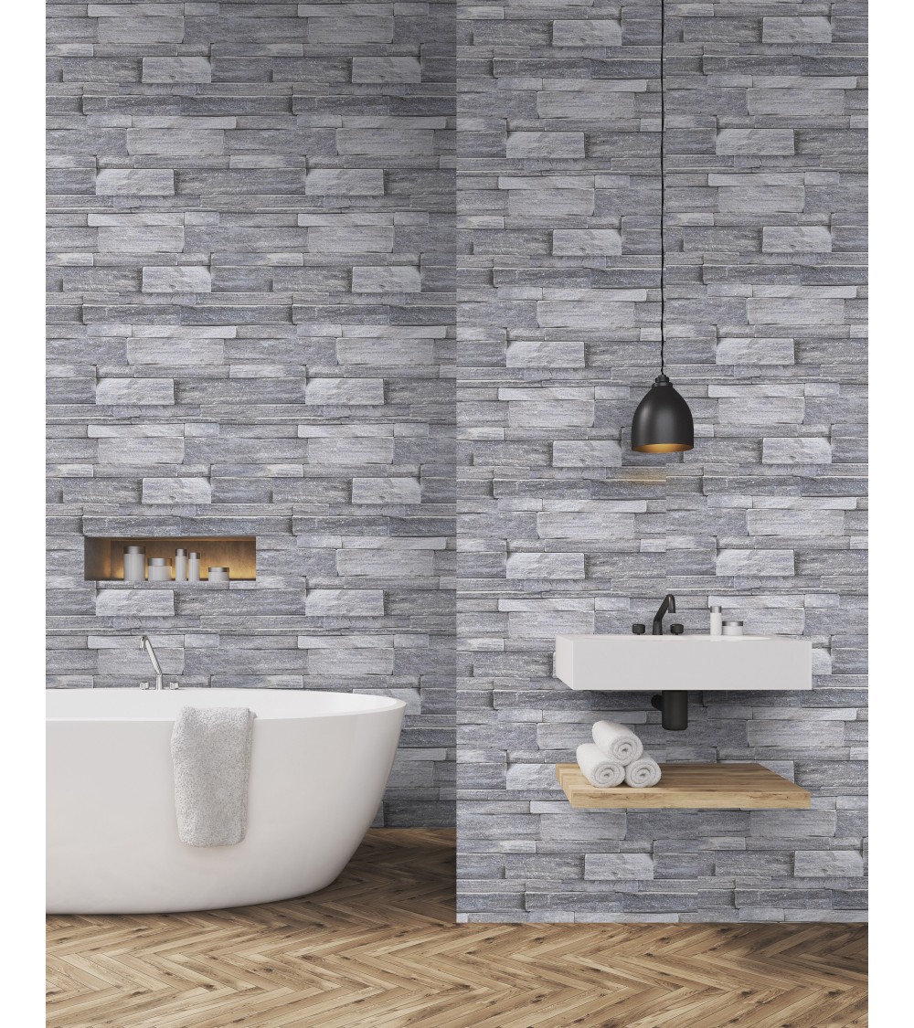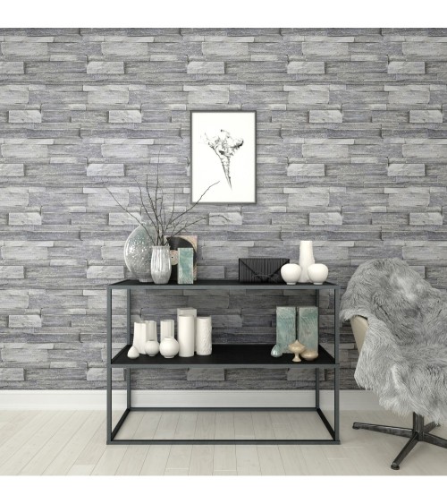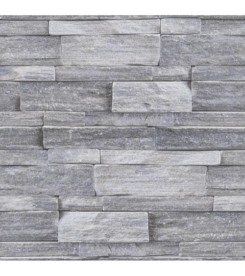 Papier peint intissé mur d'ardoises vinyle grainé gris 1005x52cm