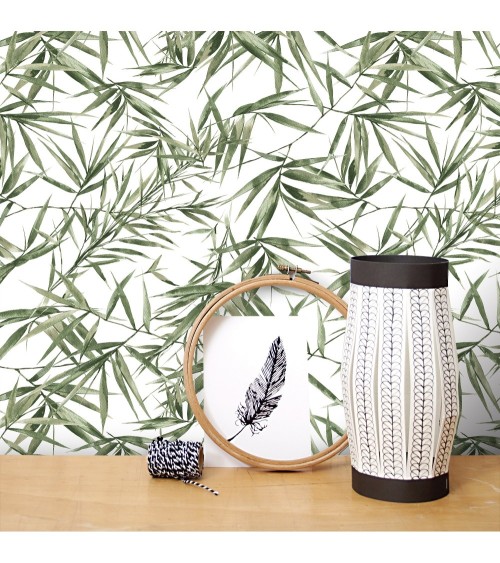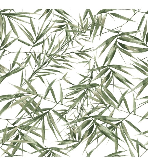Papier peint intissé feuilles de bambou vert blanc 1005x52cm