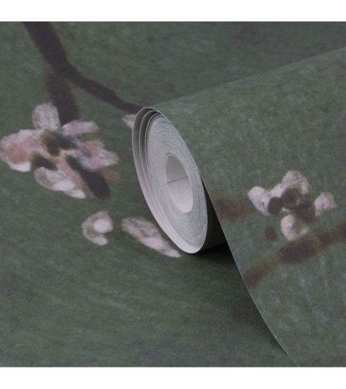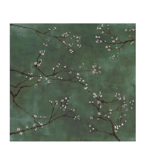 Papier peint panoramique intissé cerisiers Japonais vert 300x280cm