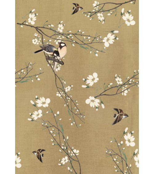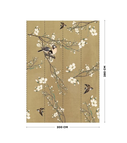 Papier peint panoramique printemps Japonais beige jaune 280x200cm