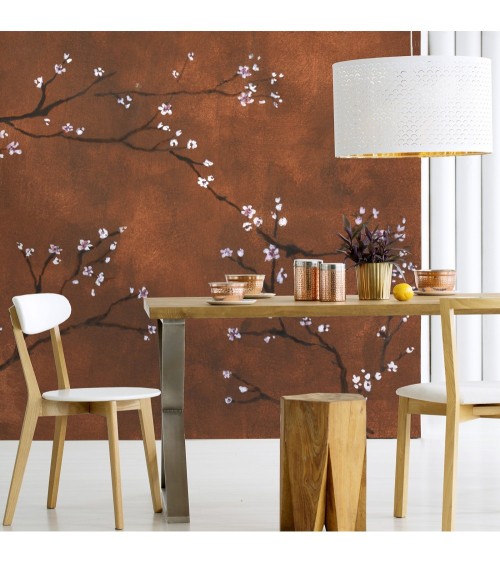 Papier peint panoramique intissé cerisiers Japonais cuivre 300x280cm