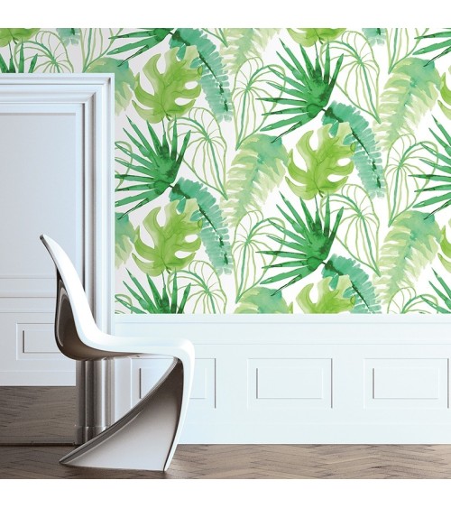 Papier peint intissé jungle fever grainé blanc vert 1005x52cm