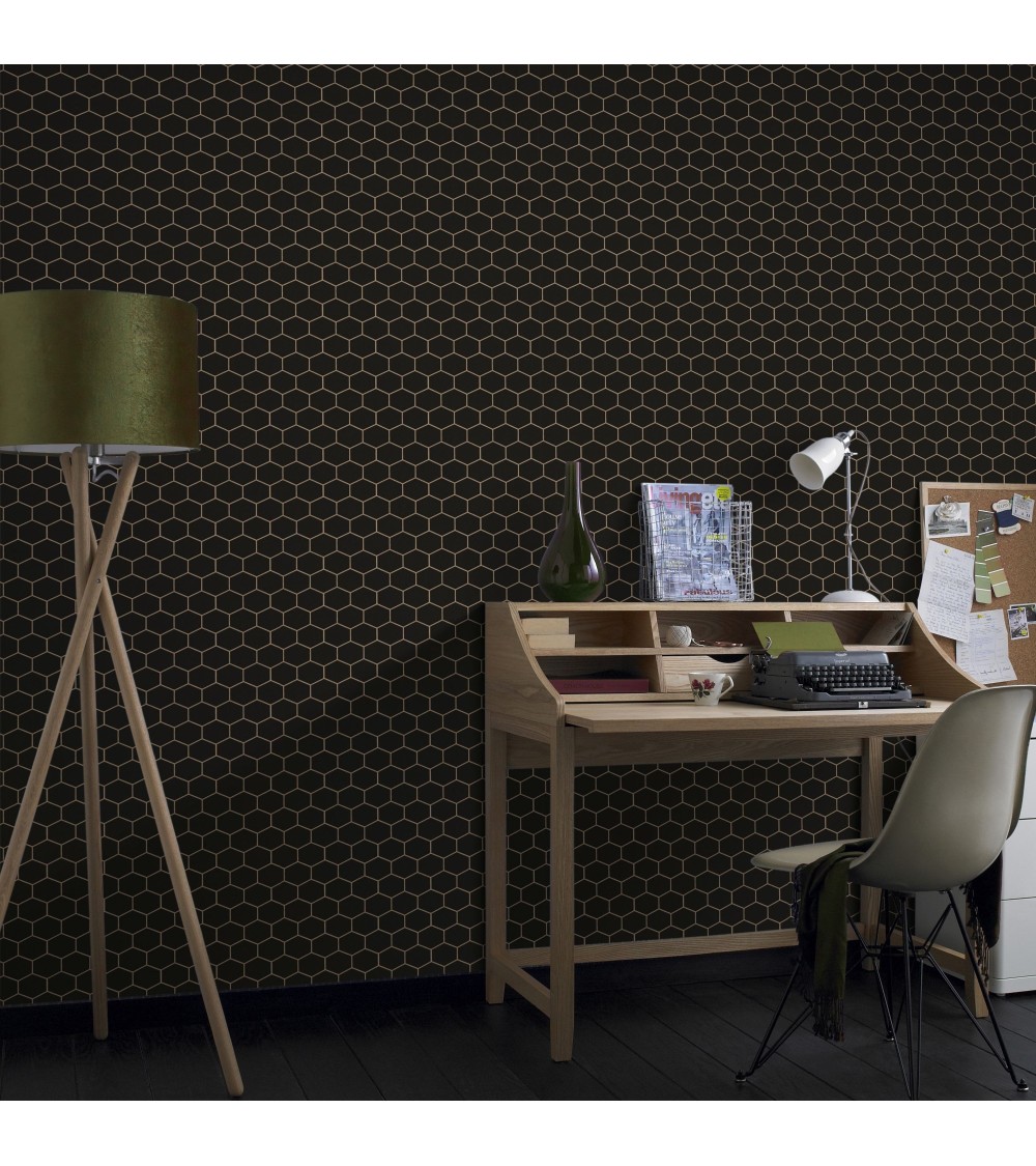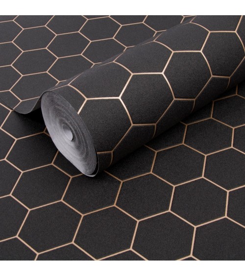 Papier peint intissé hexagone geo grainé noir 1005x52cm