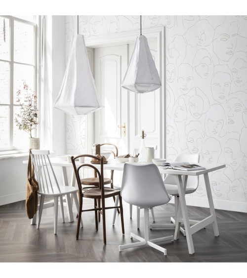 Une fresque murale inspirée des silhouettes de visages de Cocteau, parfaite pour créer un décor insolite dans votre salon ou dans une chambre. Caractéristiques du Papier peint panoramique Visages Noir et blancPapier, cellulose/polyesterEntretien facile avec une éponge humideRésistant à la lumière, ne flétrit pasvtwonen, fabriqué en BelgiqueDimensions : 150 x 280 cmLe mieux est de le coller sur un mur de couleur uniforme et claire pour un meilleur rendu Facile, Rapide : Appliquez la colle directement sur le mur, vous n'avez pas besoin de table à tapisser. Les instructions complètes en français figurent sur le rouleau. Arrachage à sec facile pour changer de déco !La fresque panoramique se compose de 3 lés différents.Ils se posent en suivant le dessin et il suffit de les poser bord à bord, le mieux est de noter le numéro sur larrière des lés pour bien les coller dans lordre.La fresque est livrée en un seul rouleau et il est nécessaire de découper selon les pointillés chacun des lés. Ils sont imprimés dans lordre de pose.Il ny a aucune perte de papier car il ny a pas de raccord.La dimension totale de la fresque est de 1 mètre 50 de largeur sur 2 mètres 80 de hauteur. Chaque lé fait 50 cm de largeur sur 2,80 mètres de hauteur.