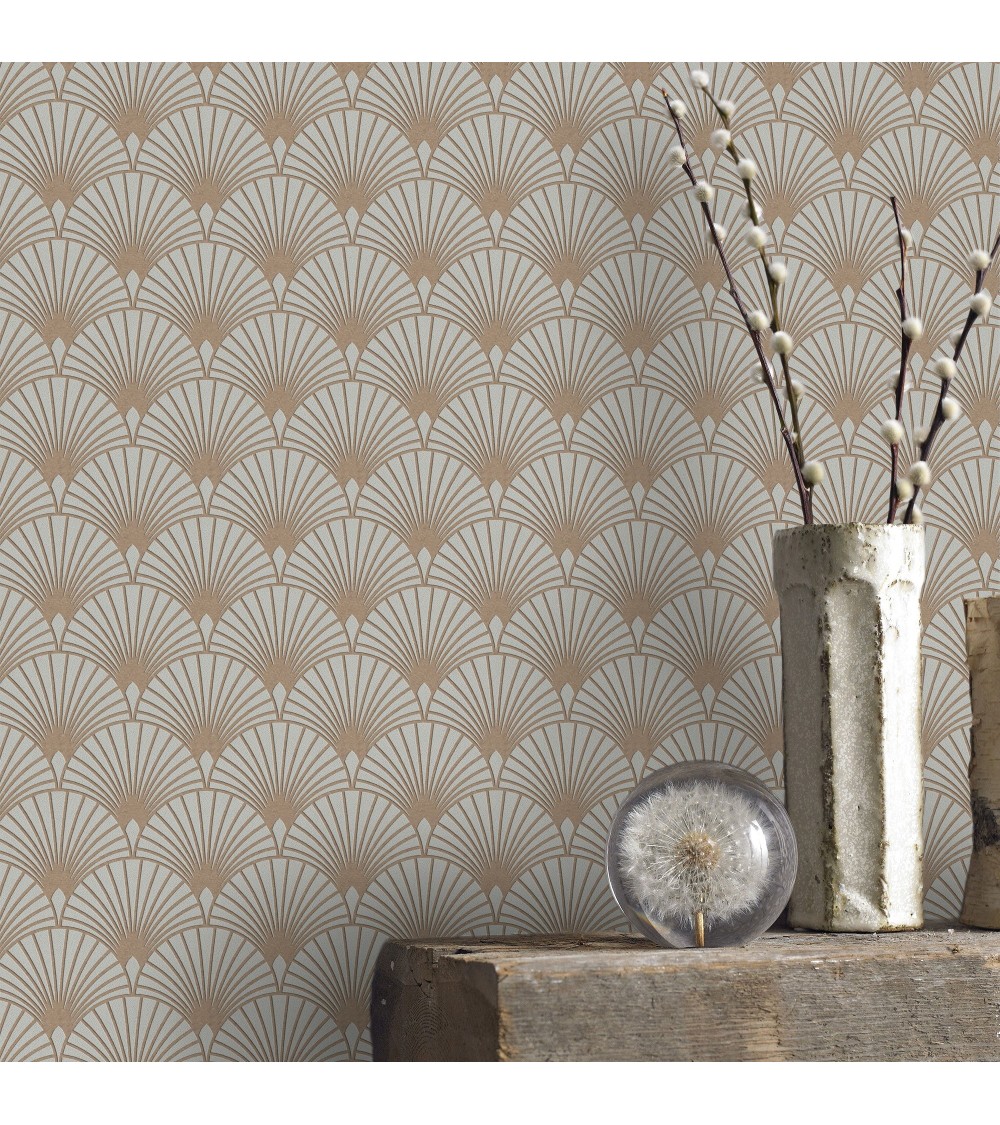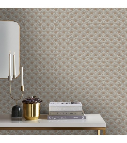 Papier peint intissé Gatsby art déco écailles beige or 1005x52cm