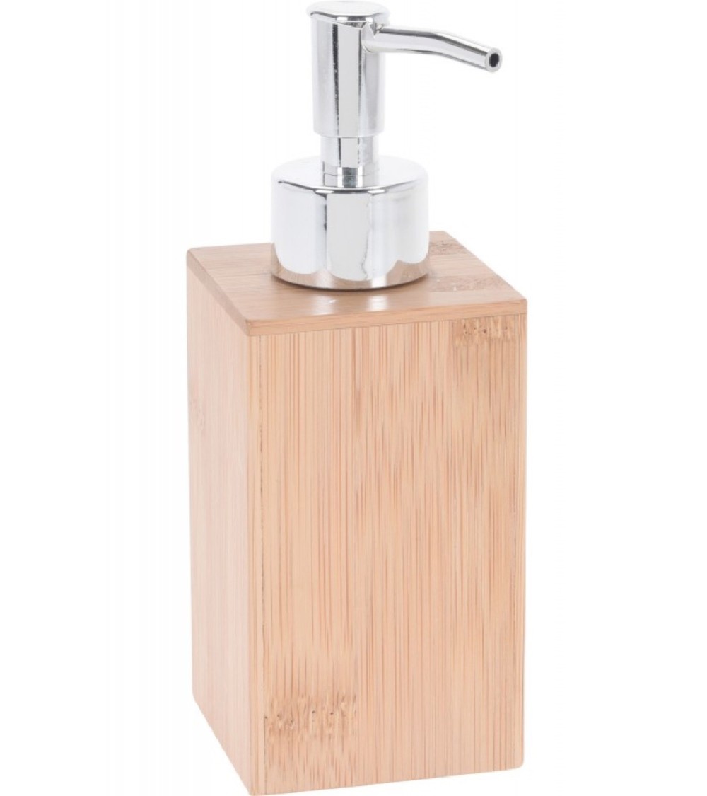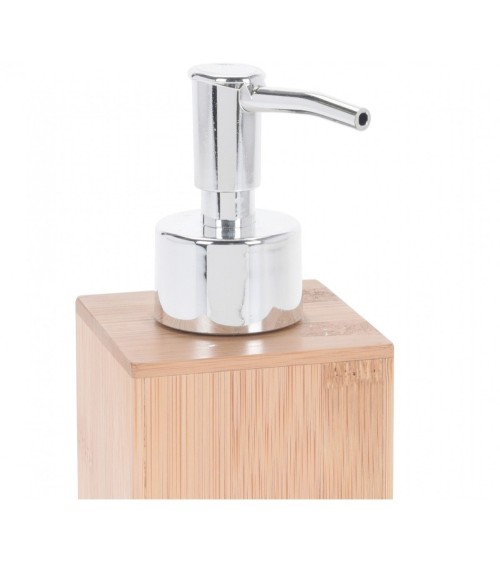 Distributeur de savon en bambou et ABS chromé. Dimensions: Longueur 6.5cm x largeur 6.5cm x Hauteur 18cm - Couleur: Bambou - Matière: ABS et bambou