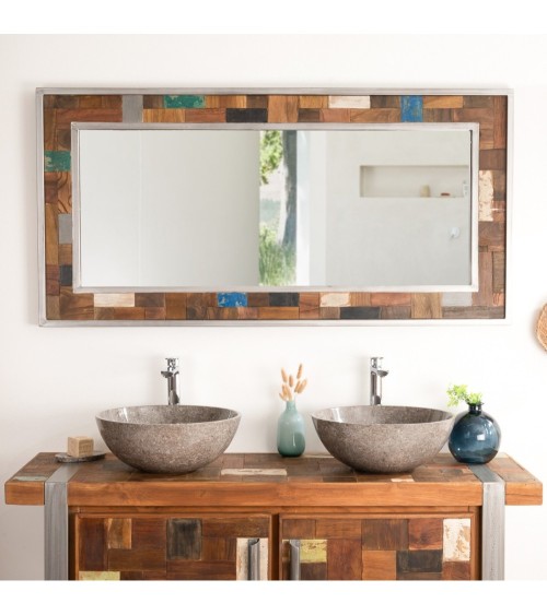 Ce ravissant miroir rectangle de salle de bain complète idéalement une pièce d'intérieur à l'esprit loft. Cet accessoire déco tendance est unique en son genre et donne à votre salle de d'eau une ambiance industrielle. Le mélange de l'acier brossé et du bois recyclé offre à votre espace bain le style atelier dans votre maison. Ce miroir crée un lieu chaleureux et cosy dans votre salle de bain. Il se marie parfaitement avec le meuble Factory de la même collection. Dimensions miroir Longueur : 140 cm Epaisseur : 2 cm Hauteur : 70 cm