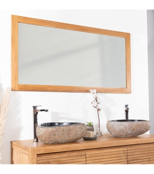 Donnez à votre salle de bain de la légèreté et de la simplicité avec le miroir rectangle en bois massif teck. Cet accessoire de décoration offre à votre salle d'eau un esprit naturel et une ambiance zen. Associé à nos meubles en bois massif teck votre espace bain se transforme en un lieu épuré et relaxant. Ajoutez un peu d'exotisme avec le bandeau lumineux en teck 140 cm. Dimensions miroir Longueur : 140 cm Epaisseur : 3 cm Hauteur : 70 cm