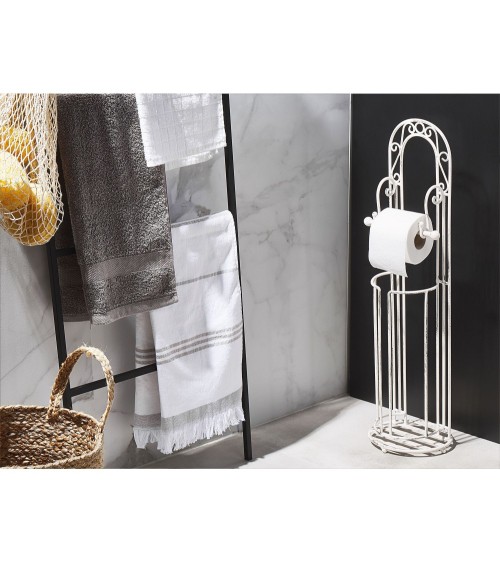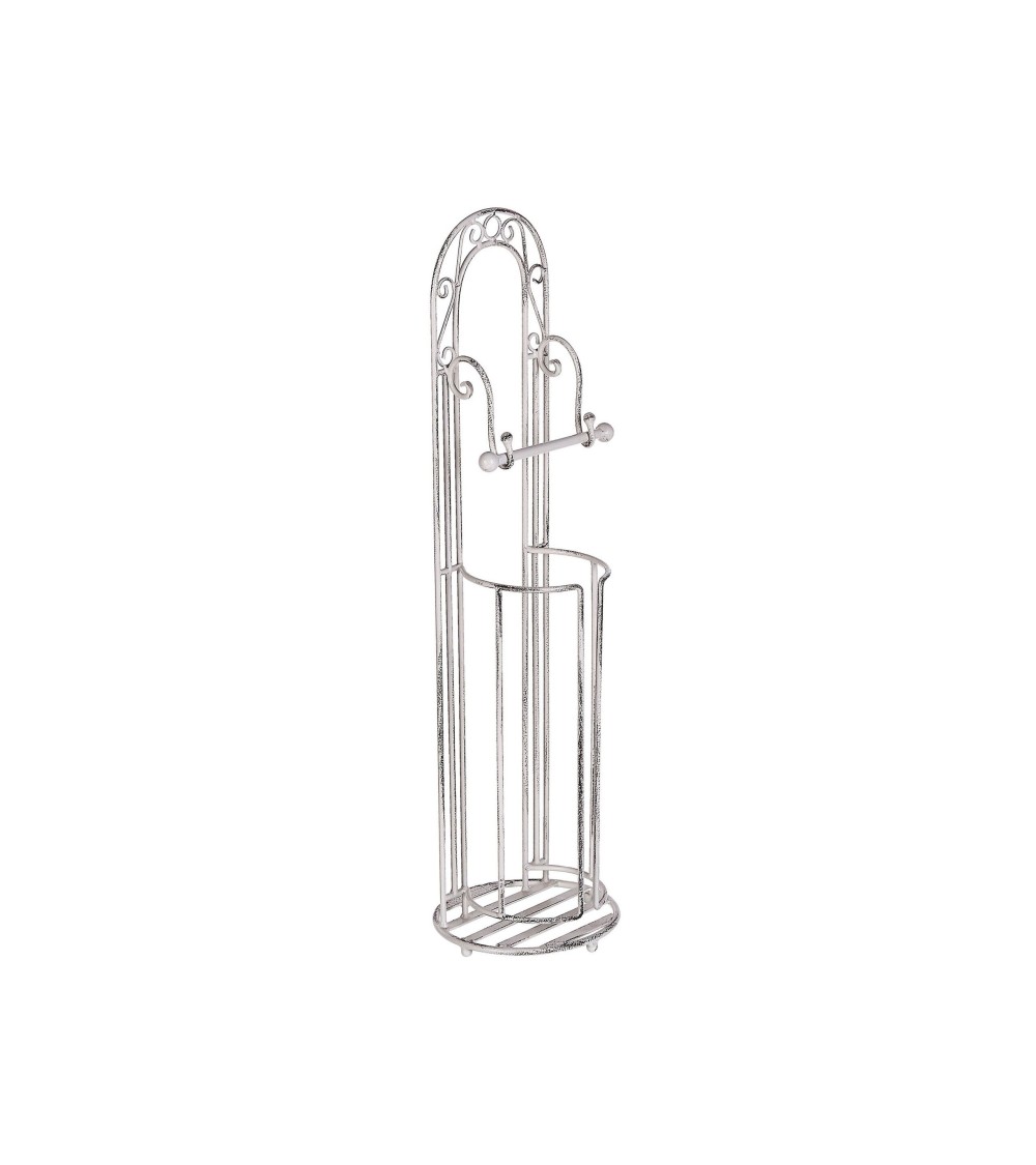 Dérouleur papier toilette sur pied en acier blanc effet vieilli . Vous aimez le style glamour et recherchez des accessoires qui complètent le look général de votre salle de bain ? Alors ce dérouleur de papier toilette est parfait pour vous. Non seulement pratique, grâce à son support et à son espace supplémentaire en forme de colonne pour ranger votre papier toilette, mais surtout agréable à regarder grâce à ses ornements décoratifs. L'aspect ancien et stylisé du porte-papier toilette sera élégant dans chaque salle de bain et se mariera parfaitement avec un mobilier clair ou sombre.Détails: Type de produit: Porte Brosse Toilette Style: Moderne Couleur principale: Blanc Type de matière: Métal Matière principale: Métal Finition: Revêtu de poudre Dimensions: Profondeur: 20 cm Largeur: 20 cm Hauteur: 75 cm Poids: 1 kg L`offre inclue: 1 x Porte Brosse Toilette Caractéristiques clés: Style rétro, Décoratif et fonctionnel, Matières de haute qualité, Facile à entretenir, Matériaux légers, facilement transportables Informations d`assemblage: Ne nécessite pas d'assemblage Informations supplémentaires: L'effet d'usure, l'aspect vieilli ou taché de ce produit sont intentionnels et ne peuvent pas être considérés comme défauts de fabrication. Conseils de maintenance: Métal: 1.Pour éviter les rayures, n'utilisez pas de nettoyants abrasifs 2. Nettoyez avec un chiffon et un détergent doux, essuyez bien ensuite 3.Pour les éléments en cuivre ou chromés, utilisez un produit de polissage spécial.