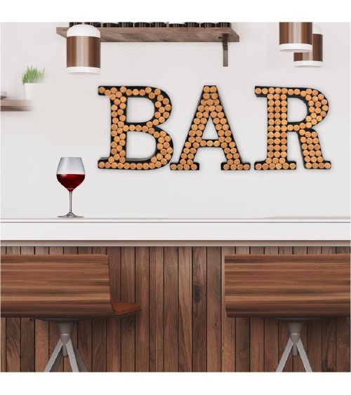 Décoration murale BAR - Collecteur de Bouchons de Lièges En métal noir Dimensions : Hauteur 30 cm - Largeur 74 cm - Profondeur 5 cm