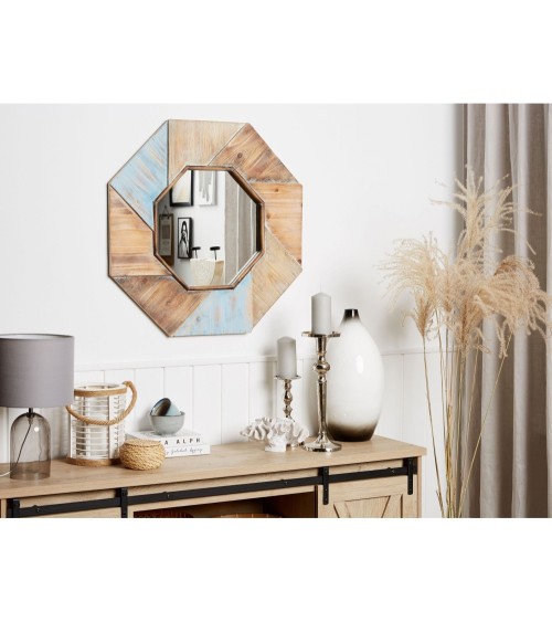 Ce magnifique miroir design s'adapte parfaitement à tout intérieur rustique et vintage. Son cadre en bois durable est fait à la main et présente une finition dans des tons de bleu pastel et à effet de bois brossé vieilli. Le charme rétro de ce miroir mural se marie à merveille avec les intérieurs industriels et traditionnels. Que ce soit dans un couloir, dans une chambre ou dans un salon - ce miroir apportera à votre intérieur beaucoup d'élégance.