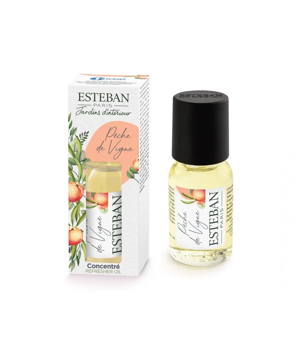 Formulés comme les meilleurs parfums, nos concentrés doivent leur subtilité à une grande variété de composants. Un parfum fruité floral Pêche de vigne, c'est l'allégresse d'une pêche gorgée de soleil, juteuse et veloutée à souhait. Notes de tête: Bambou, framboiseNote de cur: Pêche, sorbet cassis, fleurs de pêcherNotes de fond: vanille, pomme
