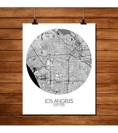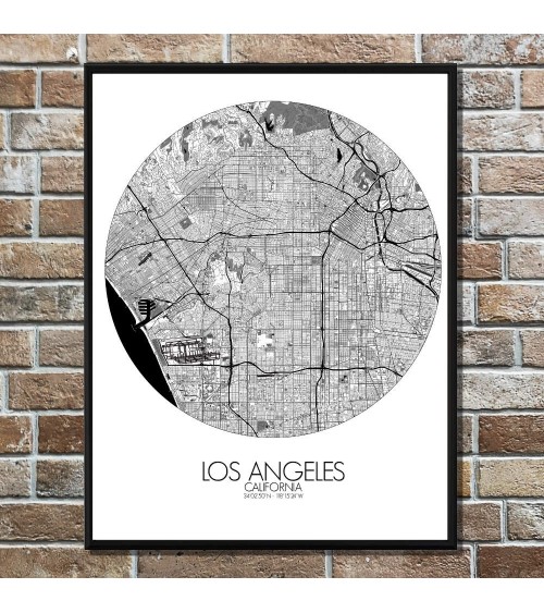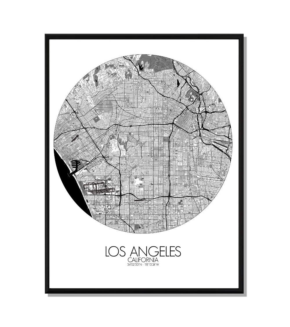 Affiche Los angeles Carte ronde 40x50