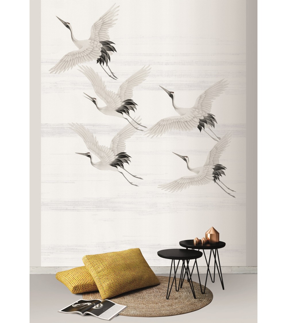 Avec pour thème l'envol de grues sauvages vers les pays chauds, cette fresque murale est parfaite pour décorer le mur de votre salon ou l'une de vos chambres. Caractéristiques du Papier peint panoramique Grues sauvagesPapier, cellulose/polyesterTexture lisseEntretien facile avec une éponge humideRésistant à la lumière, ne flétrit pasLabel Art for the home, fabriqué en BelgiqueDimensions : 200 x 280 cmFacile, Rapide : Appliquez la colle directement sur le mur, vous n'avez pas besoin de table à tapisser. Les instructions complètes en français figurent sur le rouleau. Arrachage à sec facile pour changer de déco !La fresque panoramique se compose de 4 lés différents.Ils se posent en suivant le dessin et il suffit de les poser bord à bord, le mieux est de noter le numéro sur larrière des lés pour bien les coller dans lordre.La fresque est livrée en un seul rouleau et il est nécessaire de découper selon les pointillés chacun des lés. Ils sont imprimés dans lordre de pose.Il ny a aucune perte de papier car il ny a pas de raccord.La dimension totale de la fresque est de 2 mètres de largeur sur 2 mètres 80 de hauteur. Chaque lé fait 50 cm de largeur sur 2,80 mètres de hauteur.