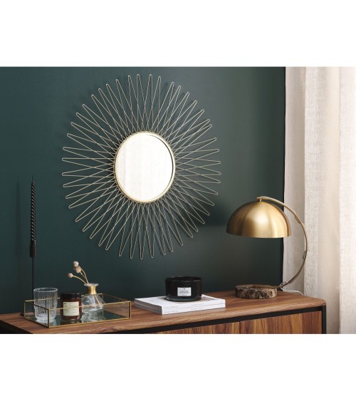 Miroir décoratif avec cadre en forme de soleil. Ce miroir est une véritable bouffée d'air frais. Le cadre doré étincelant s'accorde parfaitement avec les arrangements de meubles glamour et est exceptionnellement durable, assurant la longévité de la pièce. Cette pièce maîtresse sera parfaite pour compléter avec style votre chambre à coucher, votre salon ou votre salle de bains, et sera du plus bel effet au-dessus d'une coiffeuse ou d'une commode.Détails: Type de produit: Miroir Style: Glamour Couleur principale: Doré Type de matière: Métal Matière principale: Métal Forme: Rond Finition: Brillant Dimensions: Profondeur: 70 cm Largeur: 70 cm Hauteur: 4 cm Poids: 1 kg L`offre inclue: 1 x Miroir Caractéristiques clés: Cadre équipé de crochets de suspension pour accrochage au mur , Solution parfaite pour la chambre et le salon, Décoratif et fonctionnel, Elément élégant pour l'intérieur, Rend votre intérieur élégant Informations d`assemblage: Ne nécessite pas d'assemblage Conseils de maintenance: Métal: 1. Nettoyez avec un chiffon et un détergent doux, essuyez bien ensuite 2.Pour les éléments en cuivre ou chromés, utilisez un produit de polissage spécial 3.Pour éviter les rayures, n'utilisez pas de nettoyants abrasifs. Verre: 1.Nettoyez avec un chiffon et un nettoyant doux ou un conditionneur pour verre. Essuyez immédiatement après le nettoyage 2.Pour éviter les rayures, n'utilisez pas de nettoyants crème.