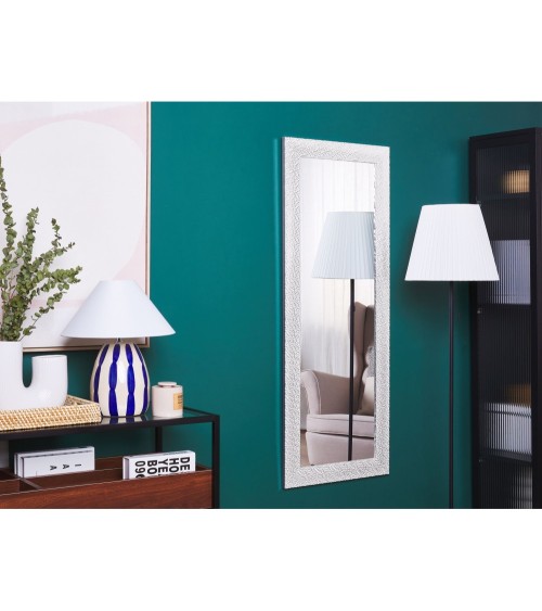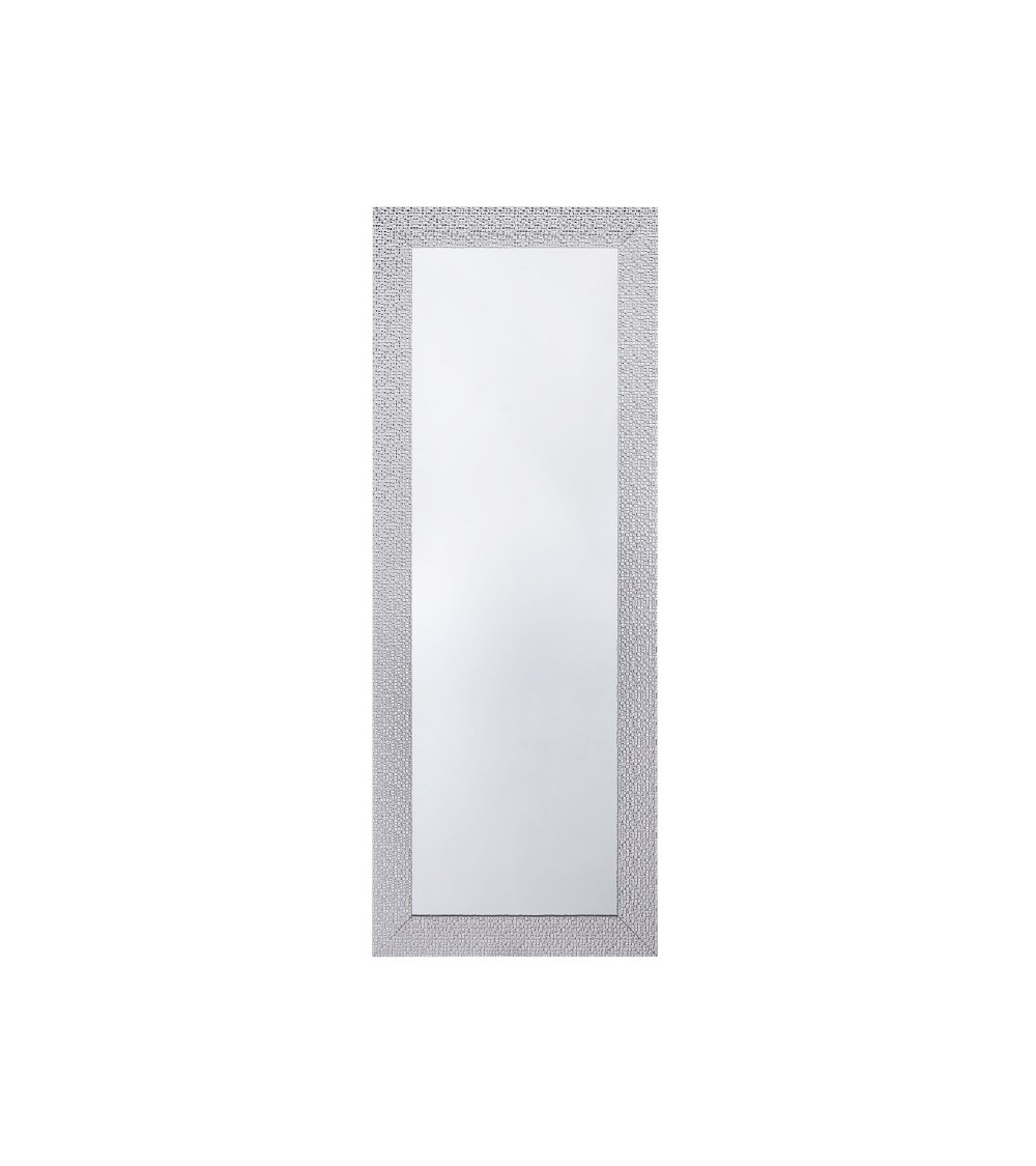 Miroir mural avec un cadre argenté moderne. Ce miroir mural moderne rajoutera une touche d'élégance et de bien être et élargira l'espace visuel de votre intérieur. Le cadre argenté à motifs modernes rajoute une touche supplémentaire de classe à ce véritable bijou de design. Ce dernier peut également être accroché verticalement ou horizontalement selon vos besoins et envies. Ce miroir est protégé à l'arrière par du papier. Ceci n'est pas un élément d'emballage et ne doit en aucun cas être retiré.Détails: Type de produit: Miroir Style: Moderne Couleur principale: Blanc Type de matière: Matériaux synthétiques Matière principale: Matière synthétique Matière secondaire: Verre Forme: Rectangulaire Finition: Plâtré Orientation: Vertical Dimensions: Profondeur: 2 cm Largeur: 50 cm Hauteur: 130 cm Poids: 7 kg L`offre inclue: 1 x Miroir Caractéristiques clés: Cadre équipé de crochets de suspension pour accrochage au mur , Agrandit l'intérieur visuellement, Style intemporel, Décoratif et fonctionnel, Matières de haute qualité Informations d`assemblage: Ne nécessite pas d'assemblage Conseils de maintenance: Matière synthétique: 1.Nettoyez avec un chiffon et un détergent doux, essuyez bien ensuite. Verre: 1.Nettoyez avec un chiffon et un nettoyant doux ou un conditionneur pour verre. Essuyez immédiatement après le nettoyage 2.Pour éviter les rayures, n'utilisez pas de nettoyants crème.