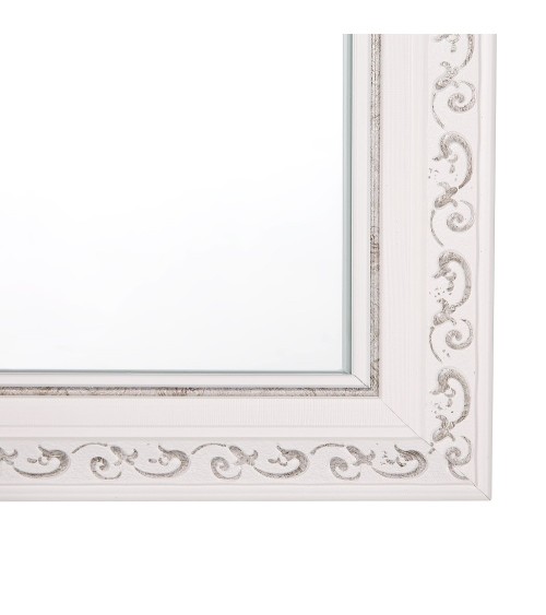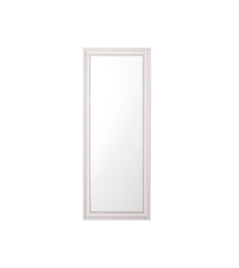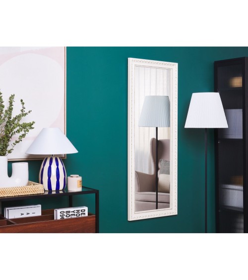 Miroir mural avec cadre blanc à motifs. Ce miroir est une décoration parfaite pour les intérieurs au décor moderne et glam. Le magnifique encadrement blanc présente un délicat motif de clochettes, complété par une finition vieillie. Apportez une touche vintage à votre salon, votre chambre ou votre hall d'entrée tout en l'agrandissant visuellement.Détails: Type de produit: Miroir Style: Moderne Couleur principale: Blanc Nuance: Crème Type de matière: Matériaux synthétiques Matière principale: Matière synthétique Matière secondaire: Verre Forme: Rectangulaire Finition: Plâtré Orientation: Vertical Dimensions: Profondeur: 3 cm Largeur: 50 cm Hauteur: 130 cm Poids: 8 kg L`offre inclue: 1 x Miroir Caractéristiques clés: Cadre équipé de crochets de suspension pour accrochage au mur , Agrandit l'intérieur visuellement, Elément élégant pour l'intérieur, De haute qualité, Facile à entretenir et extrêmement durable Informations d`assemblage: Ne nécessite pas d'assemblage Conseils de maintenance: Matière synthétique: 1.Nettoyez avec un chiffon et un détergent doux, essuyez bien ensuite. Verre: 1.Pour éviter les rayures, n'utilisez pas de nettoyants crème 2.Nettoyez avec un chiffon et un nettoyant doux ou un conditionneur pour verre. Essuyez immédiatement après le nettoyage.
