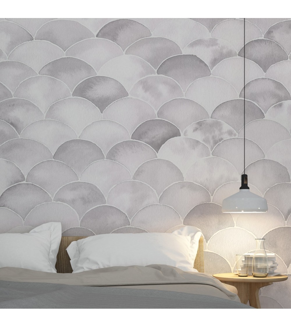 Papier peint panoramique écailles monochrome 255 x 250 gris