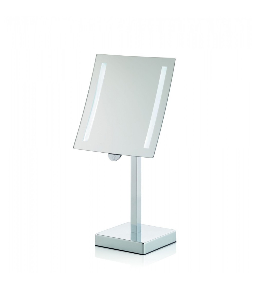 Très beau miroir grossissant sur pied en métal chromé. LED Blanche très efficace permettant un reflet impeccable et précis sur le miroir grossissant x3. Grâce à l'interrupteur 'touch' qu'il vous suffit d'effleurer pour allumer la lumière, vos séances bien-être sont simplifiées. Un miroir grossissant lumineux élégant et très original d'une efficacité remarquable.Dimension: Long. 11,5 cm x Larg. 11,5 cm x Haut. 30,5 cmCouleur: MétalMatière: MétalAlimentation: 4 Piles AA ( non fournies)