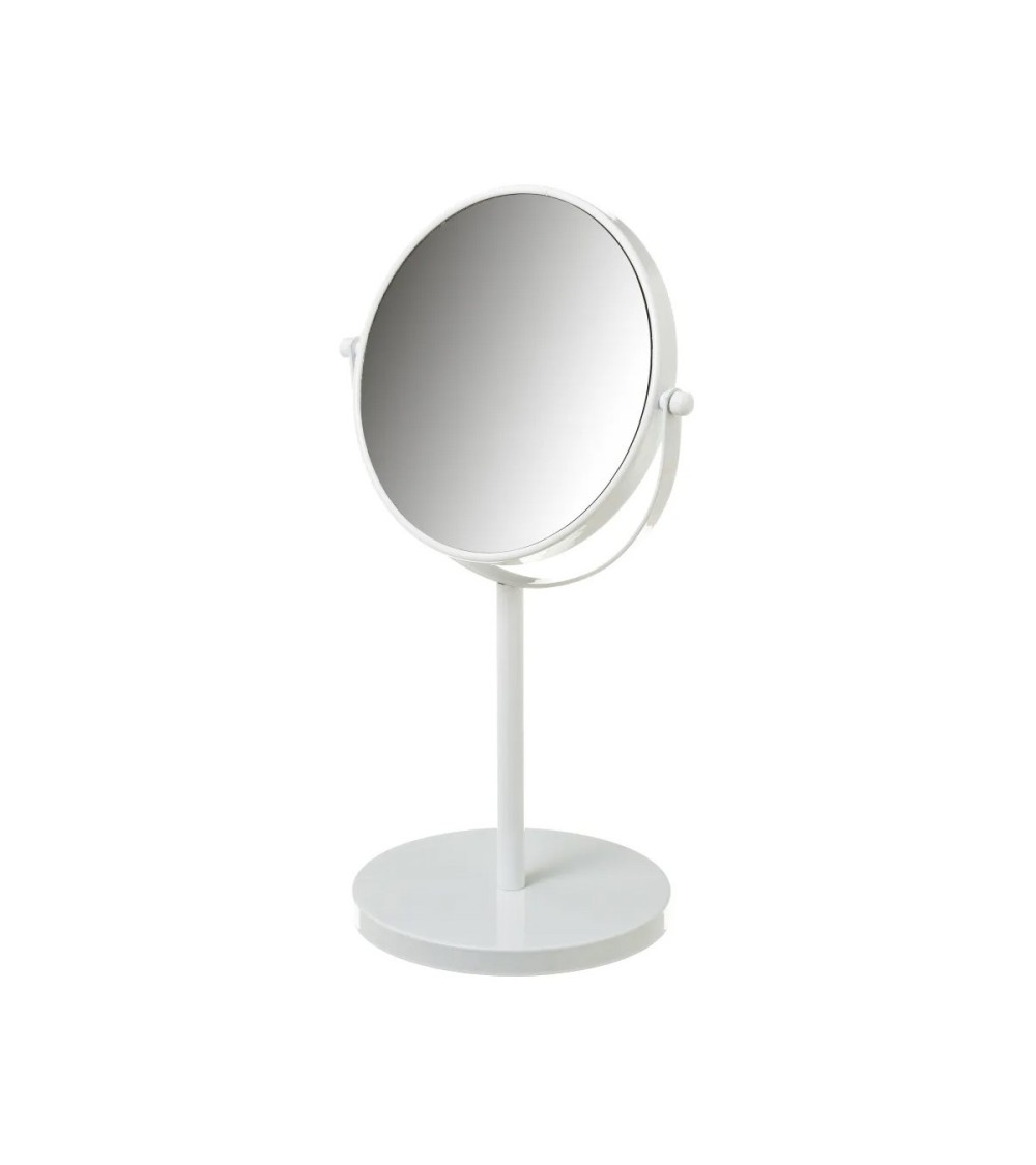 Miroir grossissant x5 sur pied en métal blanc. Ce miroir mural est à double face avec une face grossissante x5 et une face normale.Dimensions: 17x17x35cmCouleur: BlancMatière: Métal et Verre
