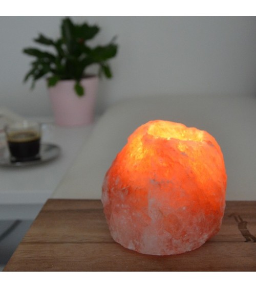 Découvrez le Bougeoir en Cristal de Sel d'Himalaya Rock. Le bougeoir en Cristal de Sel dHimalaya est une source naturelle dair frais et sain. Esthétique, son look naturel et brut se marie parfaitement à tous les styles de déco et à toutes les pièces.Pourquoi choisir le Bougeoir en Cristal de Sel dHimalaya ? En cristal de sel totalement naturel, nos bougeoirs en sel dHimalaya sont sculptés à la main, chaque pièce est unique. En plaçant une bougie (non fournie), une lumière chaleureuse subtile et douce séchappe pour créer une ambiance intime et reposante.Petit plus : nos bougeoirs ont 3 pieds amortisseurs sur la base pour le poser sereinement partout, même sur votre table laquée. Conseils dutilisation ? Placez le bougeoir dans un endroit sec et une pièce aérée. Ne pas mettre le bougeoir en contact avec de leau. Caractéristiques techniques ? - Diamètre : de 9 à 12 cm.- Hauteur: de 7 à 11 cm.- Poids: de 800 à 1000 g.- Matière : cristal de sel dHimalaya.