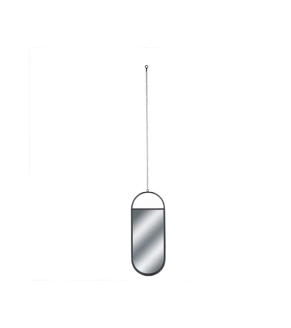 Aspect : Matériau principal : MétalMatériaux secondaires : VerreDimensions : Hauteur (en cm) : 155Hauteur de la chaîne (en cm) : 110Hauteur du miroir (en cm) : 45Longueur (en cm) : 18,50Profondeur (en cm) : 1Autres caractéristiques : Informations complémentaires : Fixation chaînePoids (en kg) : 0,64 Miroir suspendu ovale en métal 45 x 18.5 cm