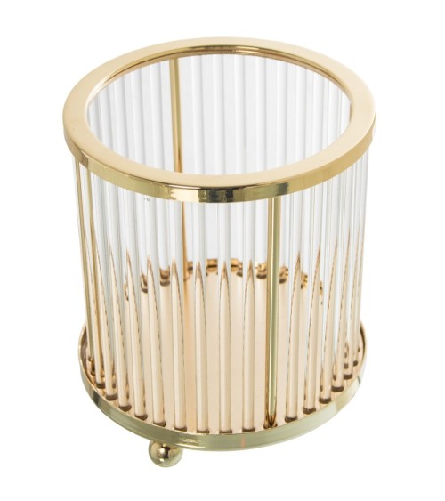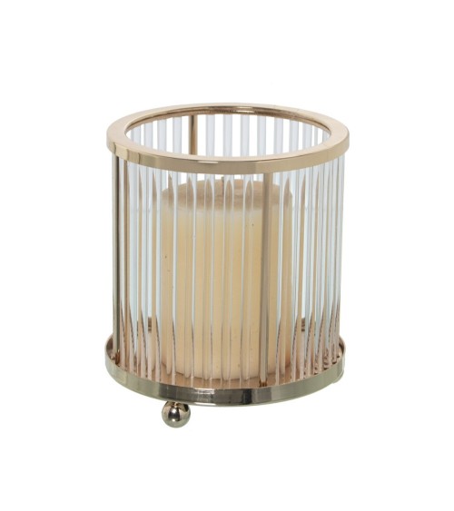 Photophore en verre et métal doré à poser. Idéal pour créer une ambiance douce et chaleureuse.Dimensions: diamètre 10cm x Hauteur 11cmCouleur: Transparent et doréMatière: Verre et métal