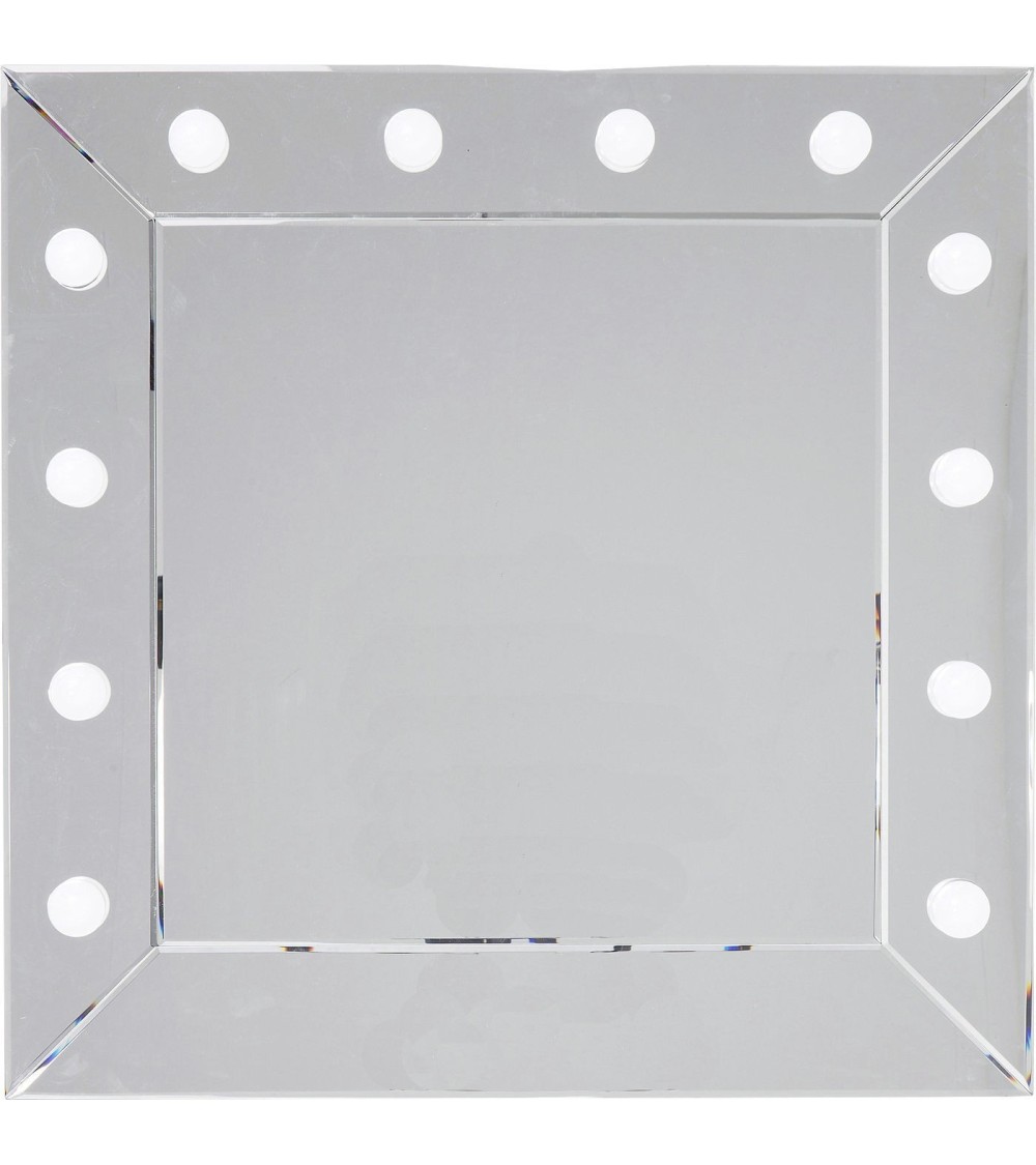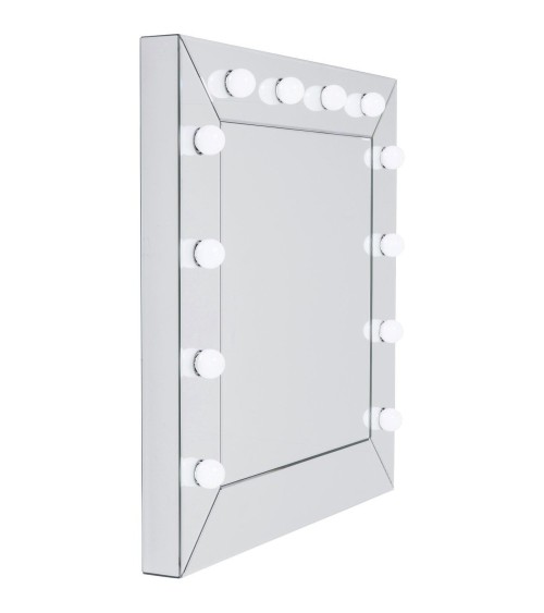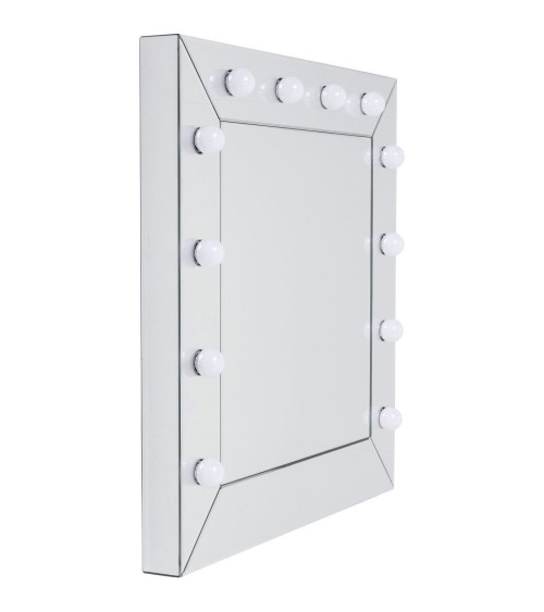 Bienvenue à Hollywood ! Ce miroir vous transporte dans la loge d'une diva avec ses lumières autour du cadre, qui vous assurent un éclairage optimal pour réussir votre maquillage. 230 V, 50/60 Hz. Douille E27. Nombre d'ampoules : 12. Max : 5 Watts. Ampoules non incluses. Ampoules remplaçables.