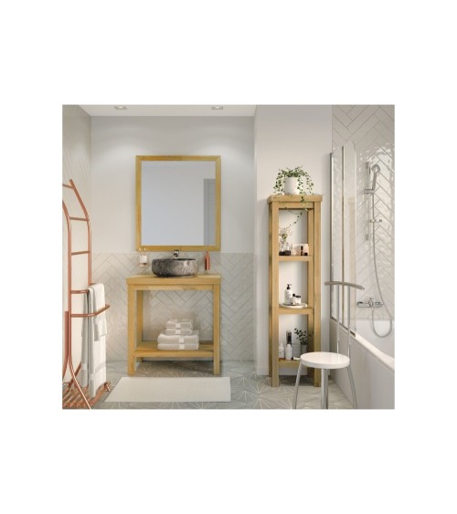 Complétez votre salle de bain de la collection PARIS avec ce miroir de 80 cm. Son design épuré en acacia apportera un côté naturel à votre salle de bain.Ce miroir s'accorde parfaitement au dessus du meuble de salle de bain 80 cm de la même collection (réf. 826154). Description technique : Dimensions : L 80 x P 3 x H 90 cm Poids : 12 kg Matière : Acacia Finition : Acacia naturel Dimensions colis : 84 x 7 x 94 cm...
