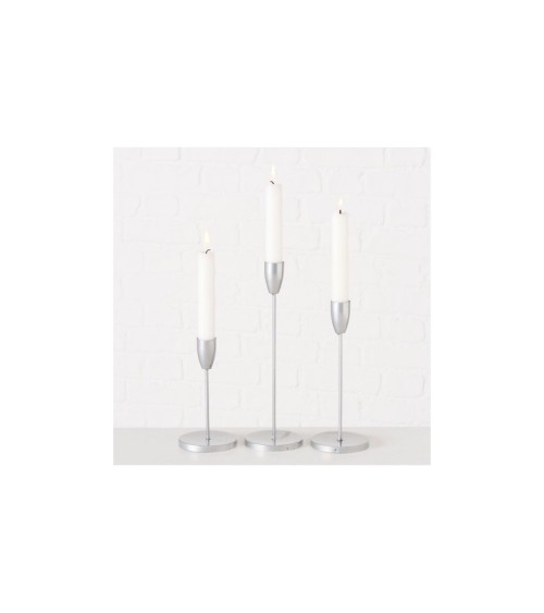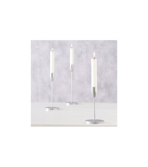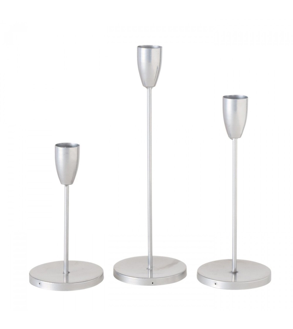 Set de 3 chandeliers à poser pour bougies longues en métal argenté. Déco et tendance. Dimensions: Hauteur 15/20/25cm X diamètre 8cmCouleur: ArgentéMatière: Métal