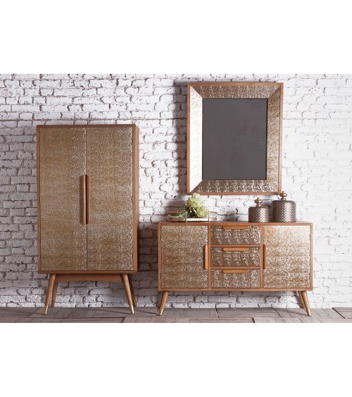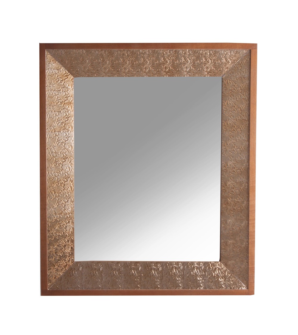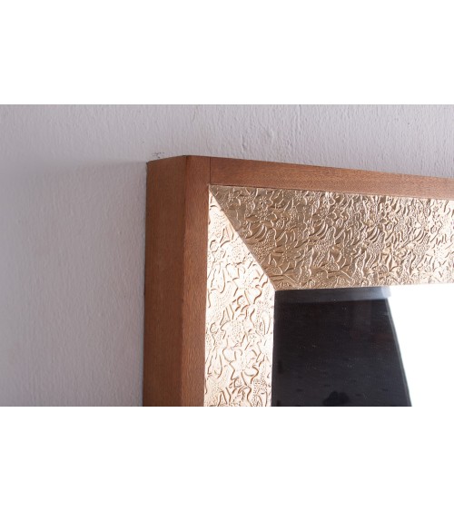 Miroir rectangulaire de style Art déco, fabriqué en bois et en aluminium doré. Il présente une finition embossée et sa taille est de 80x94x8 cm.